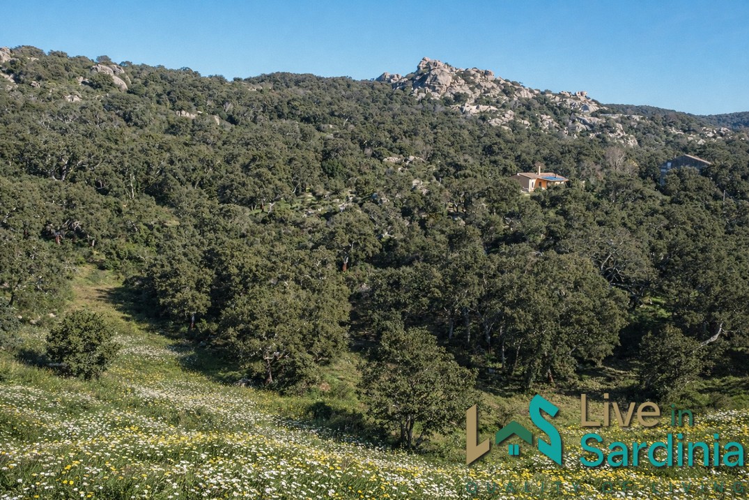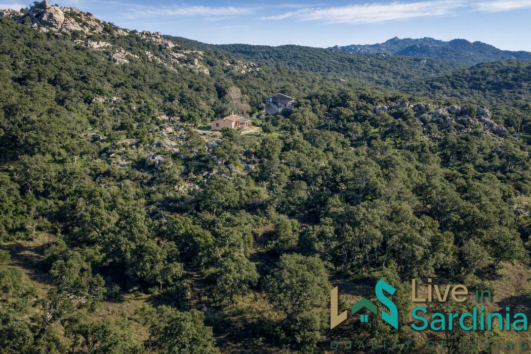 The property spans approximately 3.5 hectares, surrounded by a lush forest of cork oaks and picturesque rock formations, perfectly embodying the character of mountainous Gallura. The peace and quiet envelop every visitor from the moment they step into this hidden paradise.