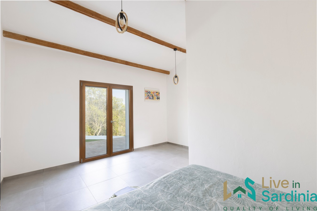 The master suite is conceived as a private spa, with an en-suite bathroom, personal sauna, and refined natural materials.